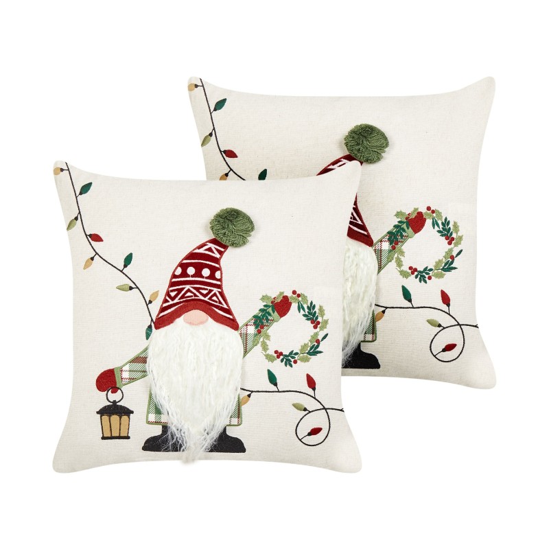Set of 2 GNOME decorative pillows Cotton 45 x 45 cm White Holiday pattern
