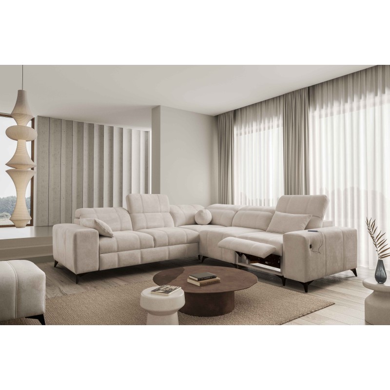 The Ballagio III Mix Corner Sofa with sleeping and relax functions is a perfect combination of functionality and comfort. With adjustable headrests and a sleeping function, this corner sofa provides the highest level of comfort. An additional advantage is the USB port, which allows you to charge electronic devices without having to move around the house. The upholstered back of the furniture is a detail that enhances its aesthetic appeal.