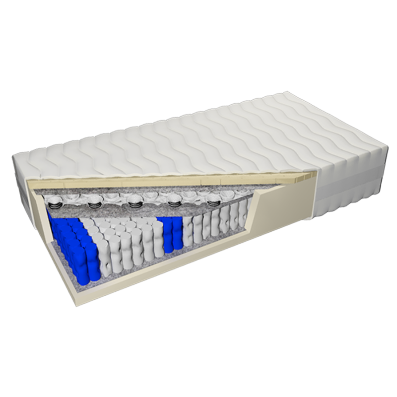The innovative Doublepocket 7-zone system was created by combining two rows of springs. The mattress includes a classic 7-zone Pocket pocket spring system, 12 cm high, containing as many as 272 springs per m2. It has a division into 7 zones of firmness, which ensures the spine is properly positioned in every sleeping position. These springs work pointwise, which is recommended especially for double mattresses. On the pocket system, a thin 3 cm stretchpocket layer is placed, enhancing the pointwise conforming effect of the mattress to the users. All vibrations and waves of the mattress are eliminated, making it extremely quiet and perfectly fitting to the silhouette. An additional layer of FlexyLatex foam with a thickness of 4 cm is used on the stretchpocket springs. This gives the mattress orthopedic properties. FlexyLatex foam is made from a combination of 20% natural rubber milk and 80% synthetic latex. It is a material with increased durability and a very high degree of elasticity. It has antibacterial and antifungal properties.