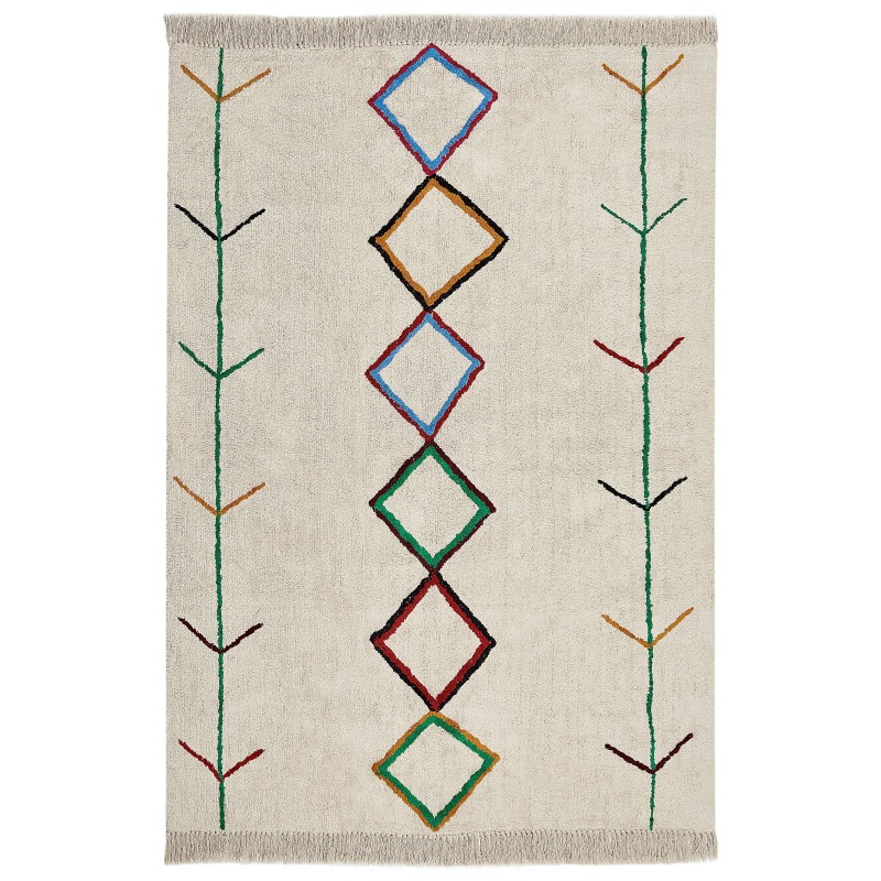 Decorate your floors with this fantastic tufted rug that will transform any room into a cozy space. Designed with a geometric pattern, it beautifully combines minimalist design with a subtle touch of colorful details. Perfect for the bedroom, but also suitable for the living room or hallway, this rug is the ideal addition for an instant makeover of any interior.