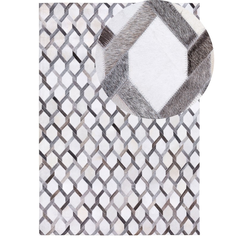 Add warmth to your apartment with this rectangular leather rug. Made from durable materials, its surface is pleasant to the touch and perfect for walking barefoot. It is also distinguished by a geometric pattern of interwoven diamonds, making the rug eye-catching and giving it a unique and timeless style.