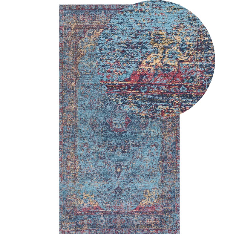 Decorate your living room or bedroom with this unique rug inspired by oriental motifs. The product is made from a high-quality blend of cotton and polyester, making it soft and pleasant to the touch while remaining durable. It also doesn't require frequent maintenance. However, the greatest advantage is the product's design, particularly its blue, vintage pattern, which is sure to catch the attention of all household members.
