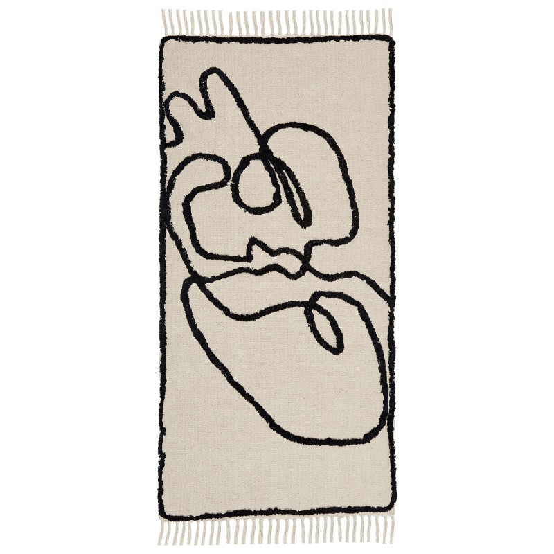 Experience the beauty of abstract art and let this elegant rug add character to your space. Featuring a single-line face motif, this accessory will become a standout element of your interior, no matter where you place it. Finished with fringes on both sides and in a neutral beige shade, the rug seamlessly fits into any modern living room.