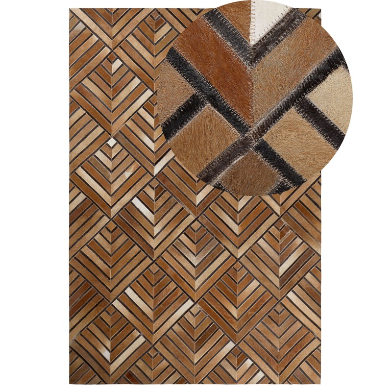 Leather patchwork rug 160 x 230 cm brown TEKIR