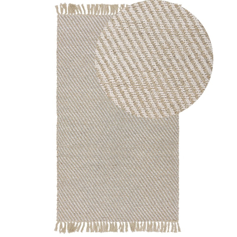 Create a warm, homely atmosphere in a boho style with the help of this fringed rug. The high-quality fabrics used in the production of this decor piece are particularly durable and easy to maintain. The classic combination of white and natural jute beige looks perfect on wooden floors and complements any arrangement. Additionally, this rectangular, double-sided rug excellently protects the floor from wear and scratches.
