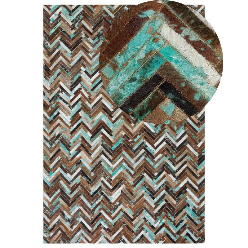 A cowhide rug that catches the eye with its multicolored amusement and trendy herringbone pattern. The high-quality and pleasant-to-touch leather is durable, making it perfect for any room in your home or office. Add a touch of coziness to your interiors with this stylish rug.