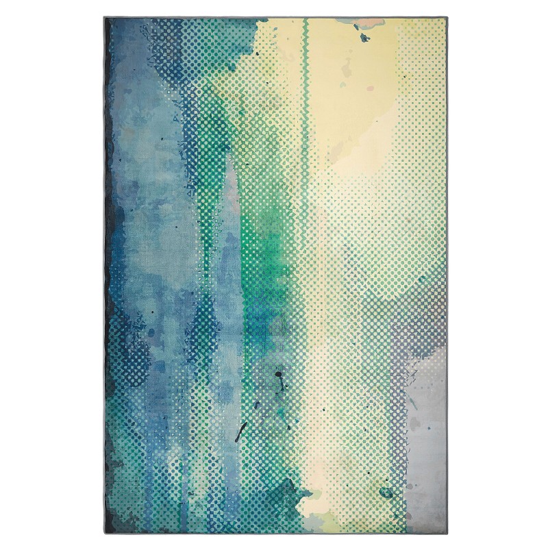 A carpet is a functional and decorative accessory that adds a personal touch to any room, whether it's a bedroom, living room, or office. This durable polyester carpet with a non-slip backing features a printed effect of spilled watercolor paint in intermingling shades of blue and green. The abstract pattern adds elegance and an artistic style to any interior design.