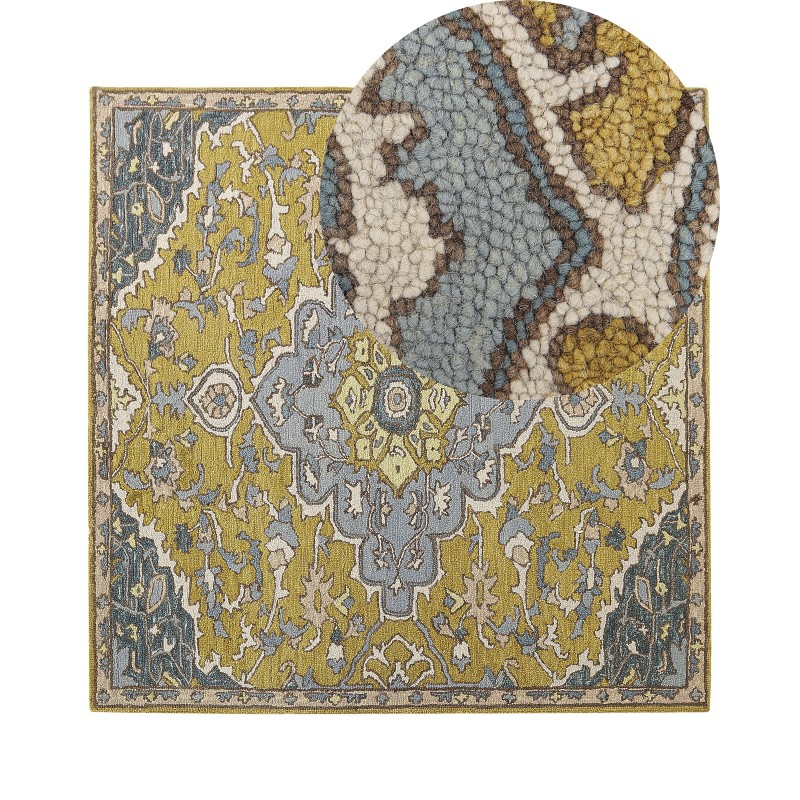 Wool rug 200 x 200 cm yellow-blue MUCUR