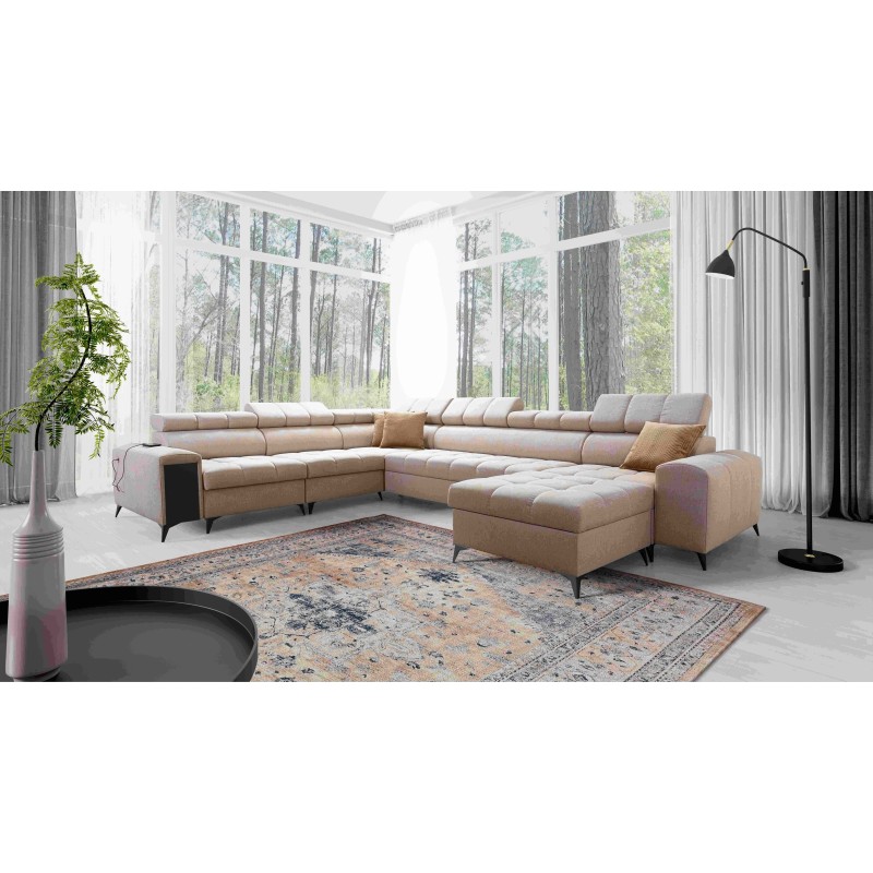 U-shaped corner sofa Venna VIII with a sleeping function, USB port, and an opening bar, fabric Avra 2