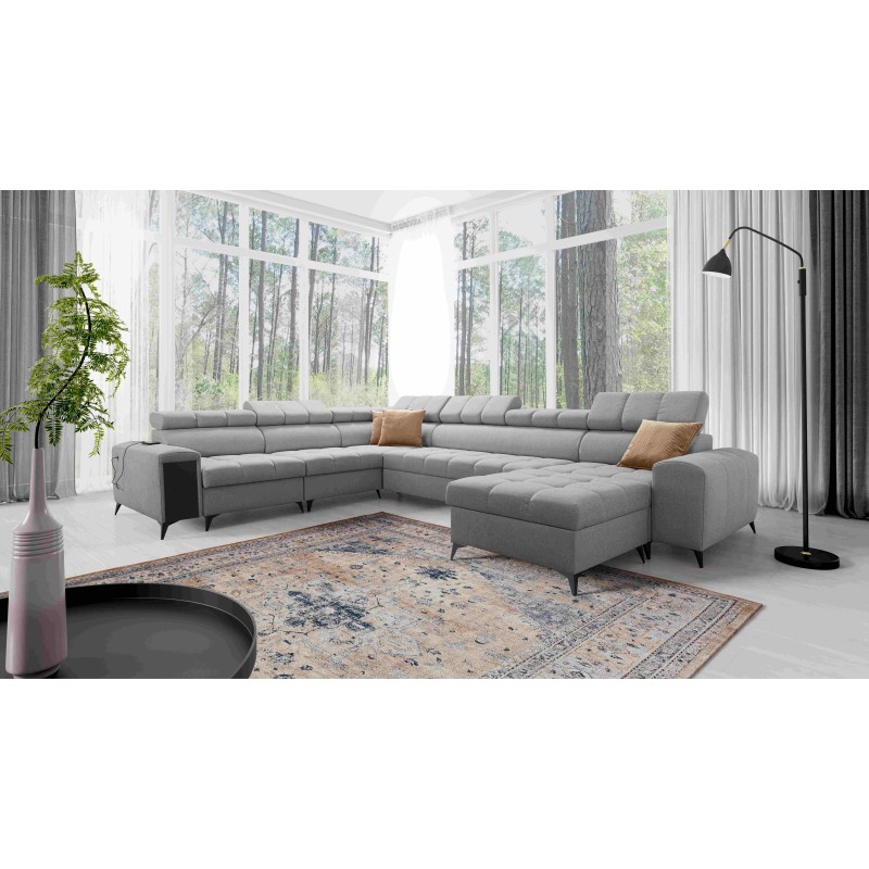 U-shaped sectional sofa Venna VIII with a sleeping function, USB port, and opening bar in fabric Avra 16