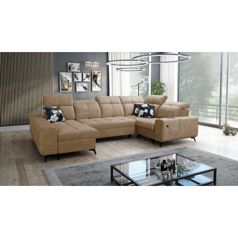 U-shaped Ascot IV corner sofa with a sleeping function, USB port, and adjustable headrests in Wave 4 fabric