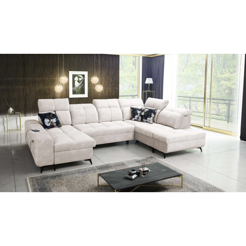 U-Shaped Corner Sofa Ascot VI with Sleeping Function, USB Port, and Adjustable Headrests