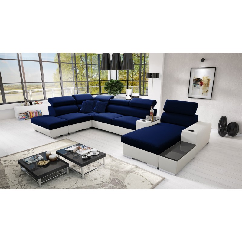 U-shaped corner sofa Napoli V with a sleeping function and an opening bar in Amor Velvet 4314 fabric + Eco-leather