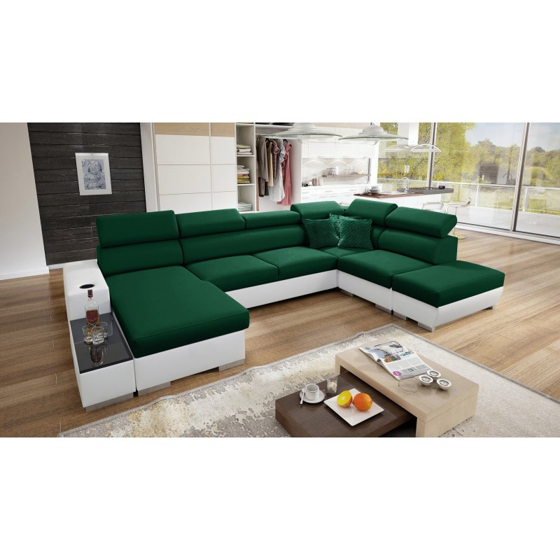 U-shaped corner sofa Napoli VI with a sleeping function and an opening bar in Amor Velvet 4311 fabric + Eco-leather