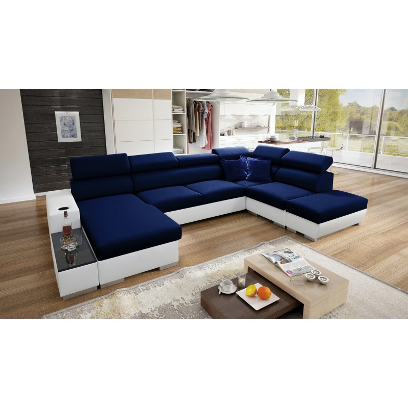 U-shaped corner sofa Napoli VI with a sleeping function and an opening bar in Amor Velvet 4314 fabric + Eco-leather