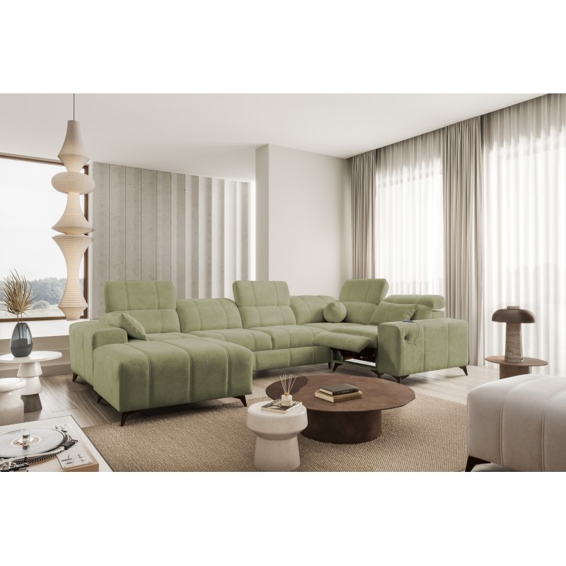 We present to you the Ballagio IV Mix U-shaped corner sofa, which combines elegance, comfort, and functionality. This extremely stylish piece of furniture with sleeping and relaxation functions, made of high-quality Plecionka fabric, Spring 1115, will surely become not only an indispensable element of the interior but also a favorite spot for leisure time.