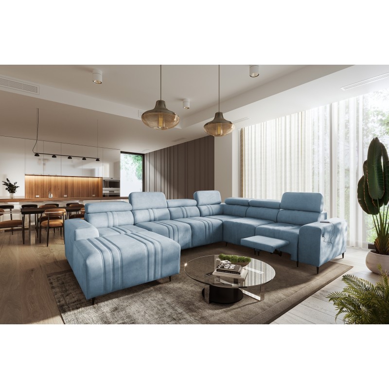 Verona VIII Mix U-shaped corner sofa with sleeping function and manual relax function, fabric Vena 6