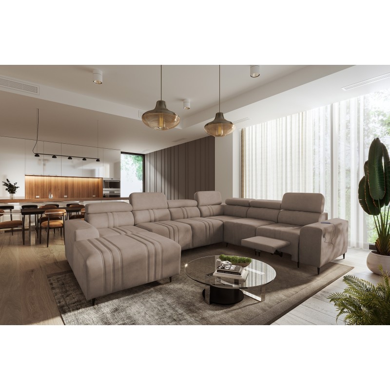 U-shaped corner sofa Verona VIII Mix with sleeping function and manual relax function, fabric Vena 14