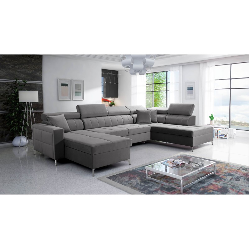 We invite you to explore our U-shaped corner sofa - Oslo VI. This exceptional piece of furniture, featuring a sleeping function and a practical bedding container, stands out with its unique style and excellent user comfort. Made from high-quality materials, including Velvet fabric, Jaguar 2167, it is extremely durable and aesthetically pleasing.