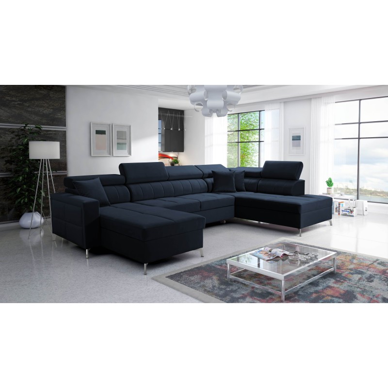 We invite you to explore our U-shaped corner sofa - Oslo VI. This exceptional piece of furniture, featuring a sleeping function and a practical storage compartment for bedding, stands out with its unique style and excellent user comfort. Made from high-quality materials, including Velvet fabric, Jaguar 2186, it is extremely durable and aesthetically pleasing.