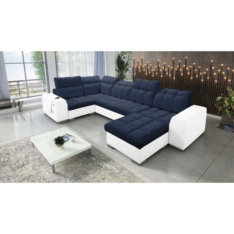 U-shaped corner sofa Prisma IV with sleeping function, USB port, and bedding storage, fabric Terra 79 + Eco-leather