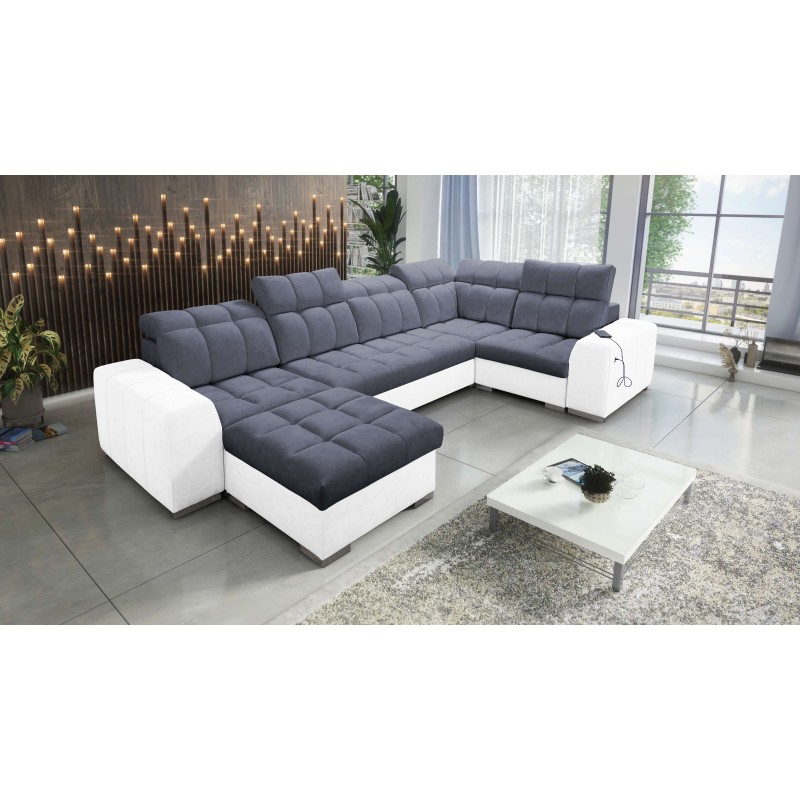 U-shaped corner sofa Prisma IV with a sleeping function, USB port, and bedding storage in Terra 96 fabric + Eco-leather