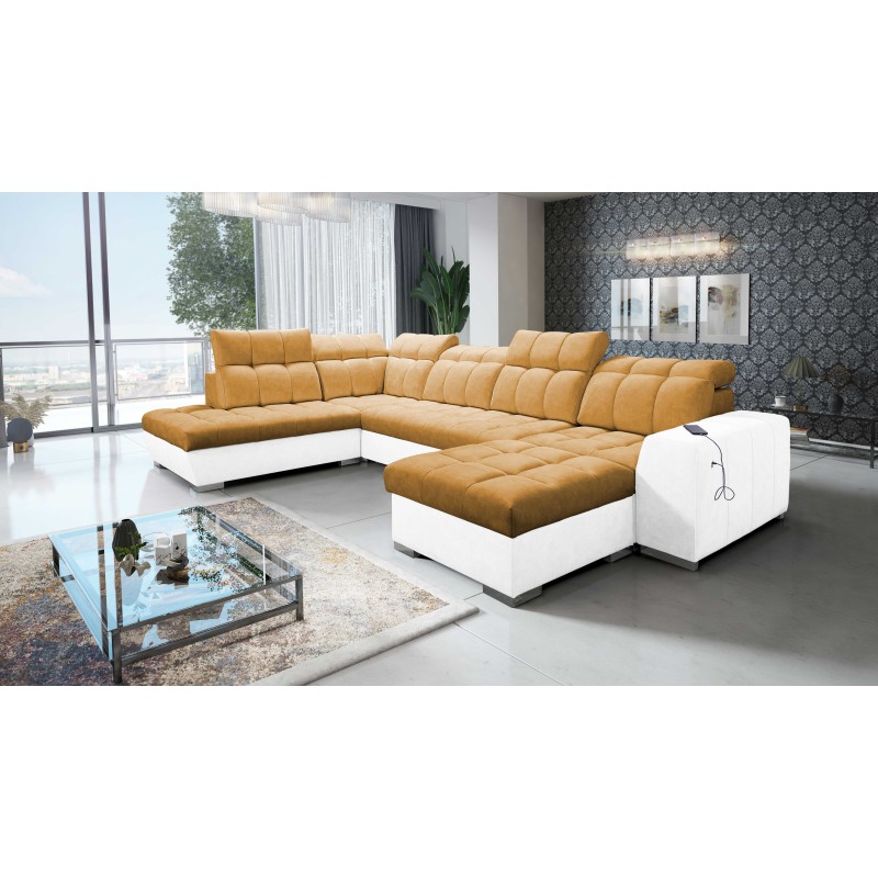 Prisma VI U-shaped corner sofa with sleeping function, USB port, and storage - Velvet | Pet friendly, Terra 48 + Eco-leather
