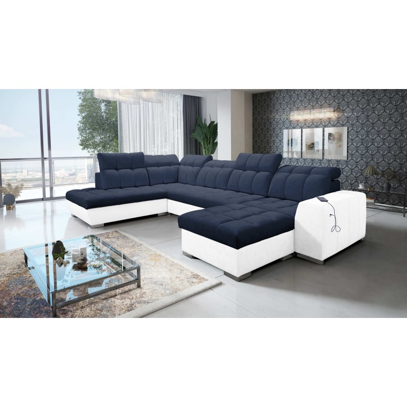 U-shaped sectional Prisma VI with a sleeping function, USB port, and bedding storage, fabric Terra 79 + Eco-leather
