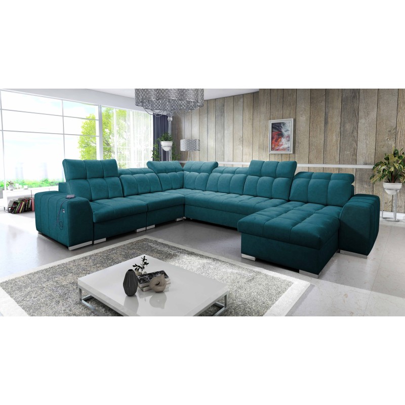The U-shaped corner sofa Prisma VIII with a sleeping function, USB port, and bedding storage in Terra 80 fabric – an exceptional piece of furniture that will impress you with its style and functionality.