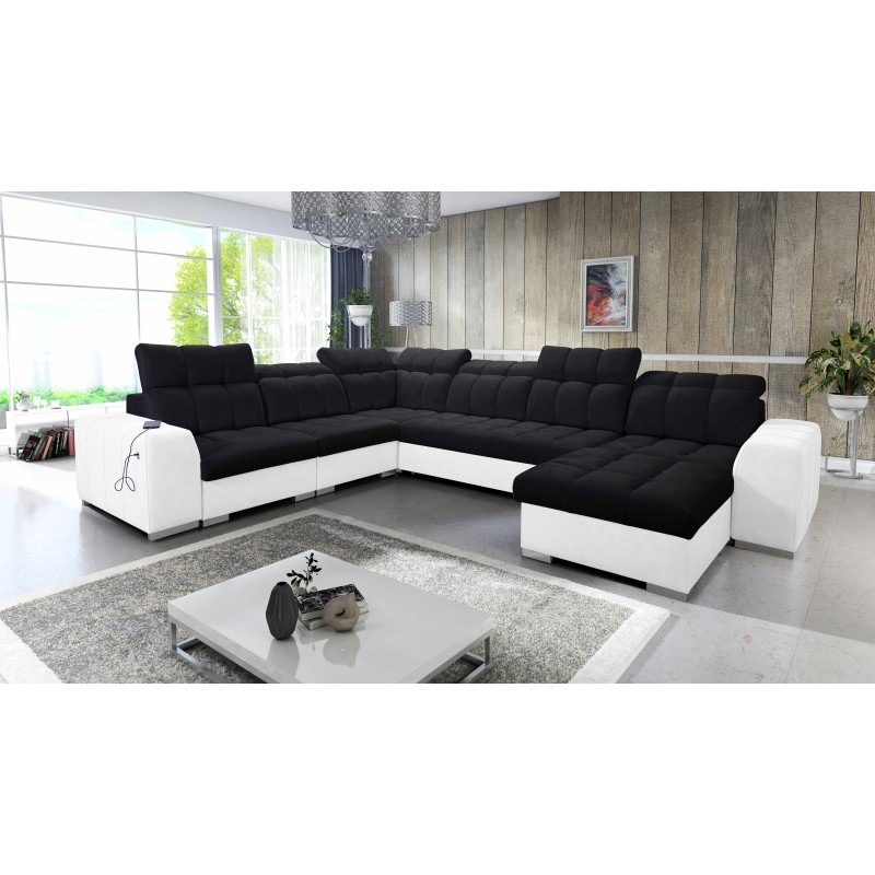 U-shaped corner sofa Prisma VIII with a sleeping function, USB port, and bedding storage, fabric Terra 99 + Eco-leather