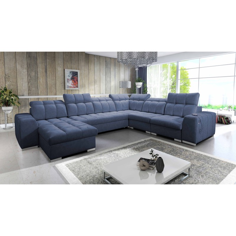 The U-shaped corner sofa Prisma VIII with a sleeping function, USB port, and bedding storage in Terra 80 fabric – an exceptional piece of furniture that will impress you with its style and functionality.