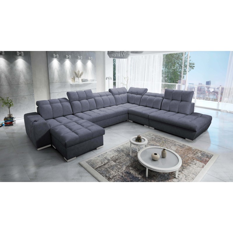 U-shaped corner sofa Prisma X with a sleeping function, USB port, and storage for bedding, fabric Terra 96