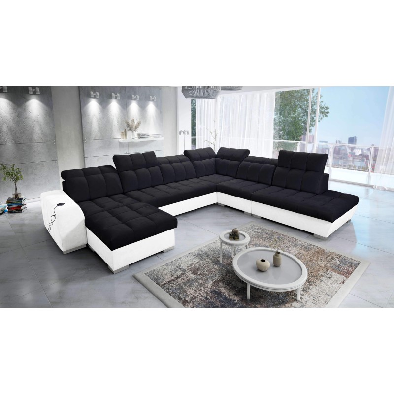 U-shaped corner sofa Prisma X with a sleeping function, USB port, and bedding storage in Terra 99 fabric + Eco-leather