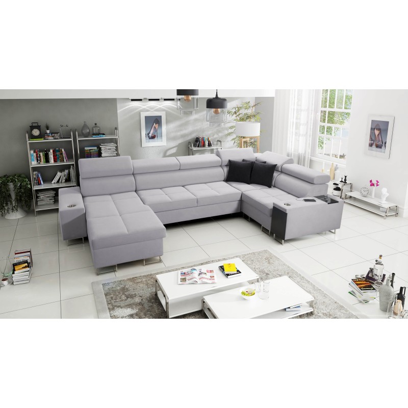 U-shaped corner sofa Orbix IV Maxi with a sleeping function, adjustable headrests, USB port, and bedding storage, fabric Sawana