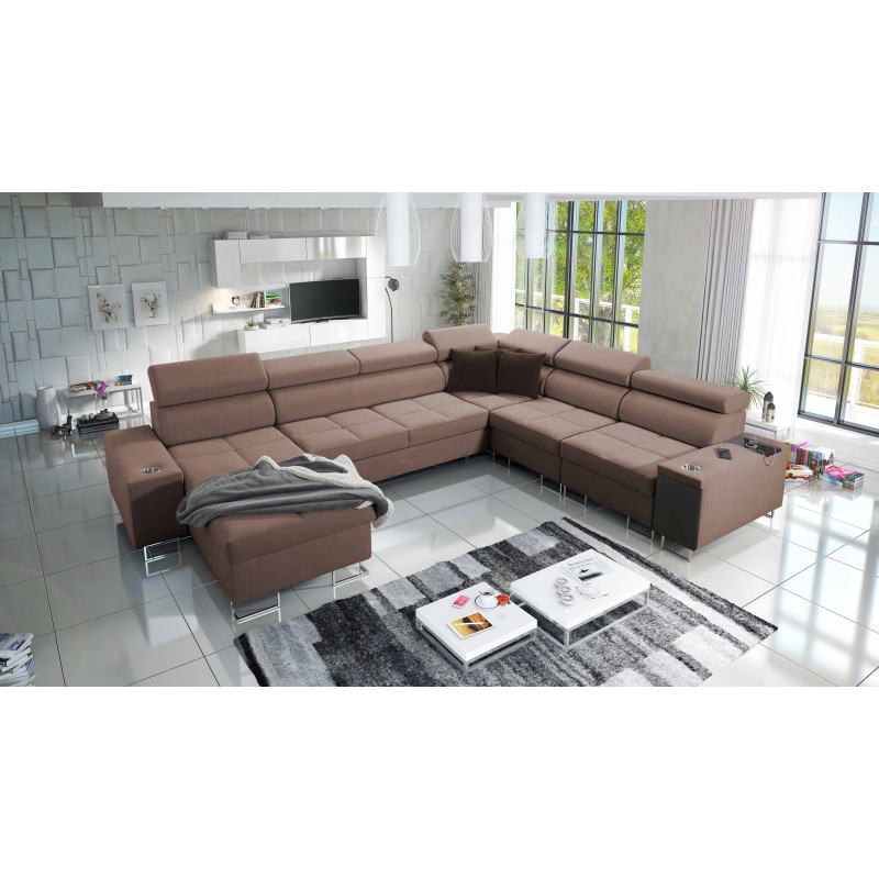 U-shaped Orbix VIII corner sofa with a sleeping function, adjustable headrests, USB port, and storage for bedding in Sawana 25 f