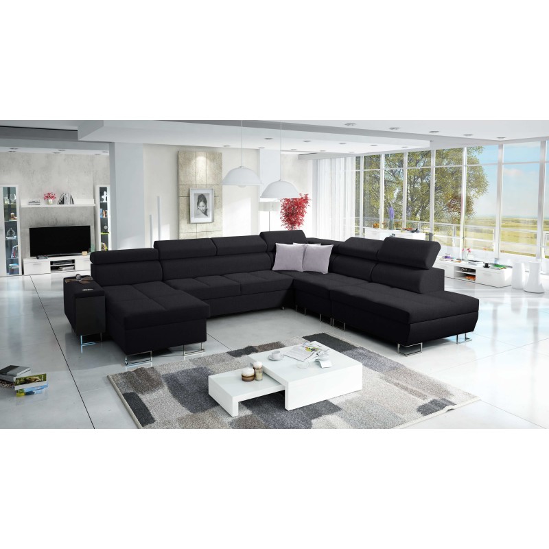 Orbix X U-shaped corner sofa with sleeping function, adjustable headrests, USB port, and a storage compartment for bedding, fabr