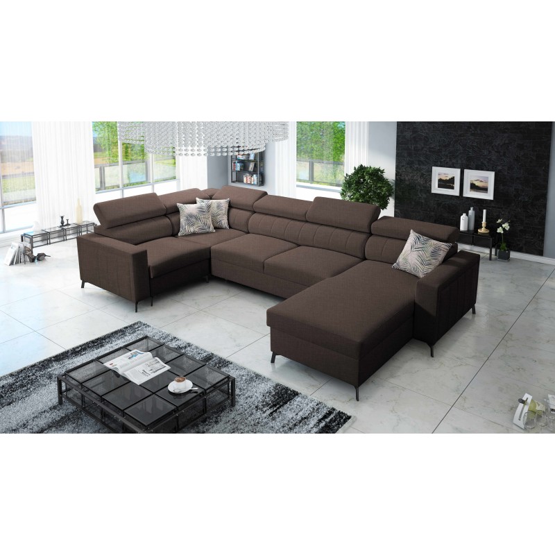 U-shaped corner sofa Arco V Mini with a sleeping function, adjustable headrests, fabric Sawana 26