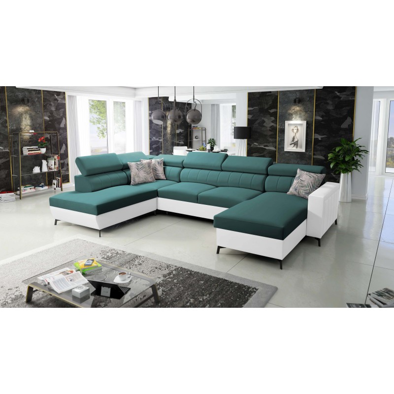 U-shaped sectional sofa Arco VI with sleeping function, adjustable headrests, fabric Mono 238 + Eco-leather