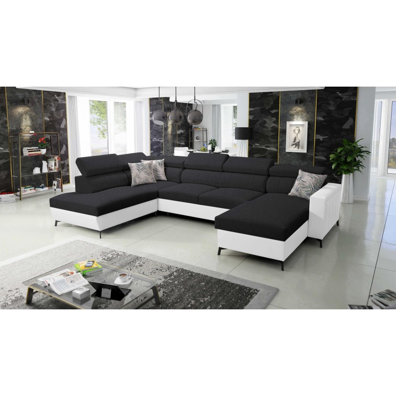 U-shaped Arco VI corner sofa with sleeping function, adjustable headrests, fabric Sawana 14 + Eco-leather
