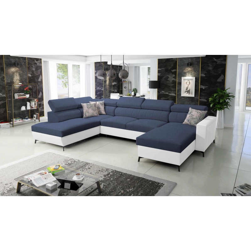 U-shaped Arco VI corner sofa with a sleeping function, adjustable headrests, Sawana 80 fabric + Eco leather