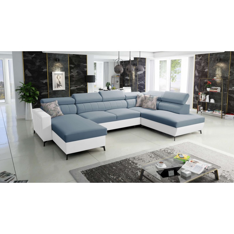 U-shaped corner sofa Arco VI with a sleeping function, adjustable headrests, fabric Mono 239 + Eco-leather