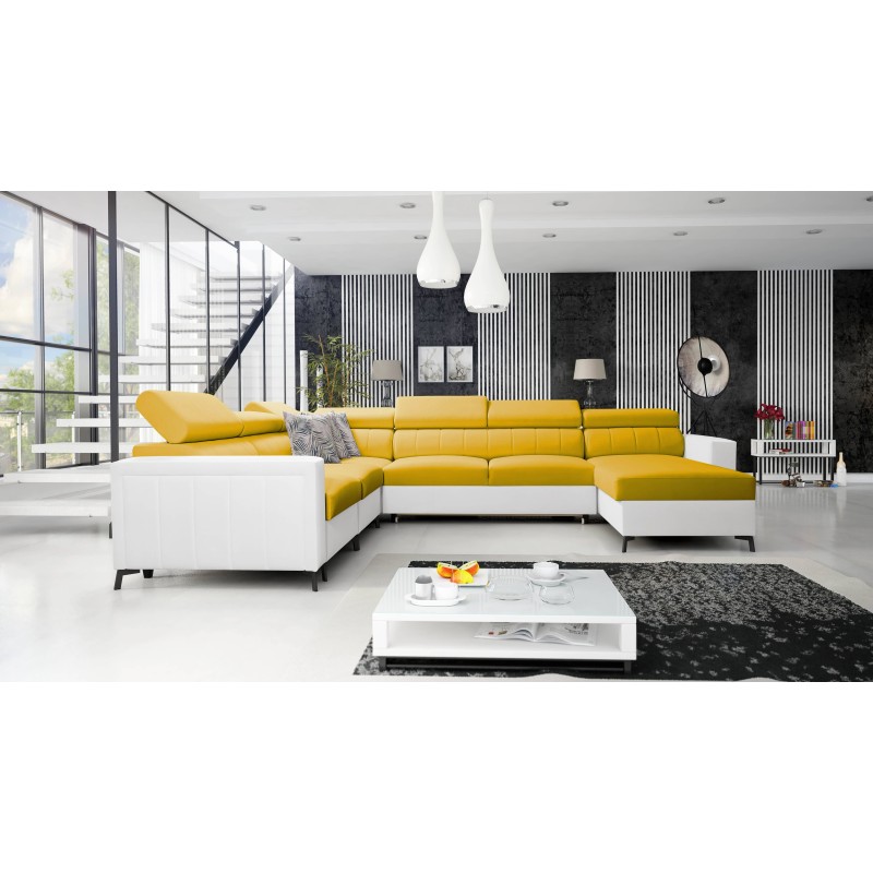 U-shaped corner sofa Arco VII with a sleeping function, adjustable headrests, fabric Mono 236 + Eco-leather