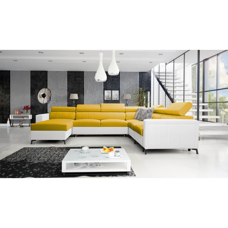 U-shaped corner sofa Arco VII with a sleeping function, adjustable headrests, fabric Mono 236 + Eco-leather
