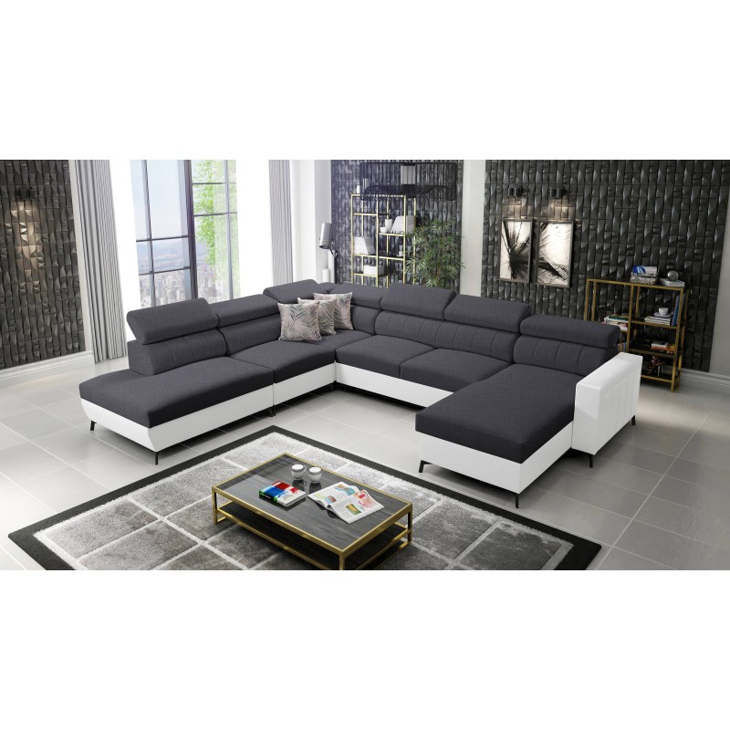 U-shaped Arco IX corner sofa with a sleeping function, adjustable headrests, fabric Sawana 96 + Eco-leather