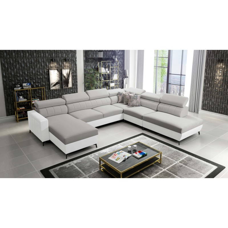 The U-shaped corner sofa Arco IX with a sleeping function, adjustable headrests in Mono 244 fabric + Eco leather