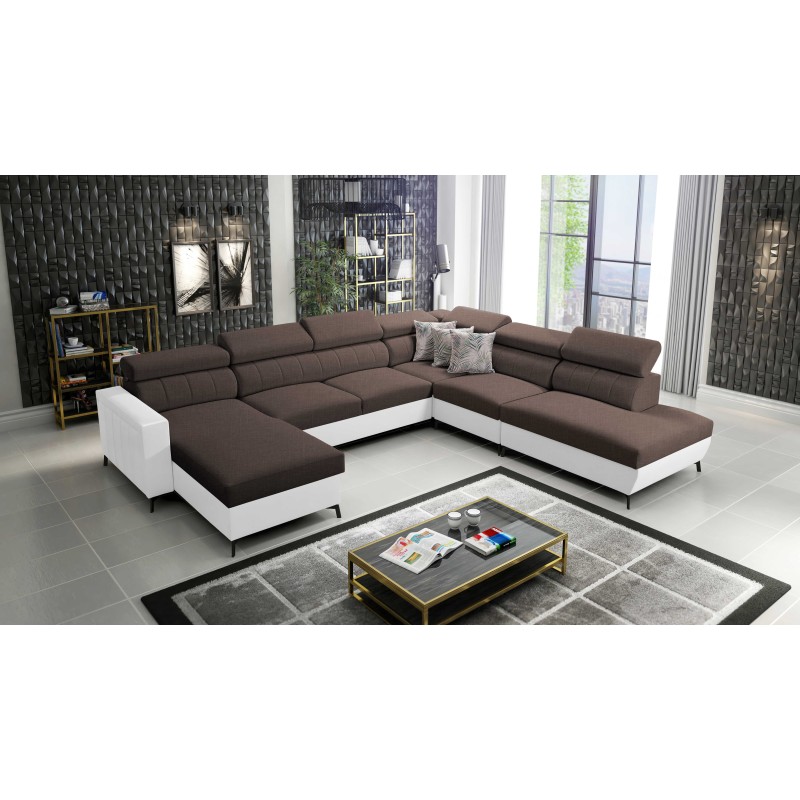 U-shaped sectional sofa Arco IX with a sleeping function, adjustable headrests, fabric Sawana 26 + Eco-leather