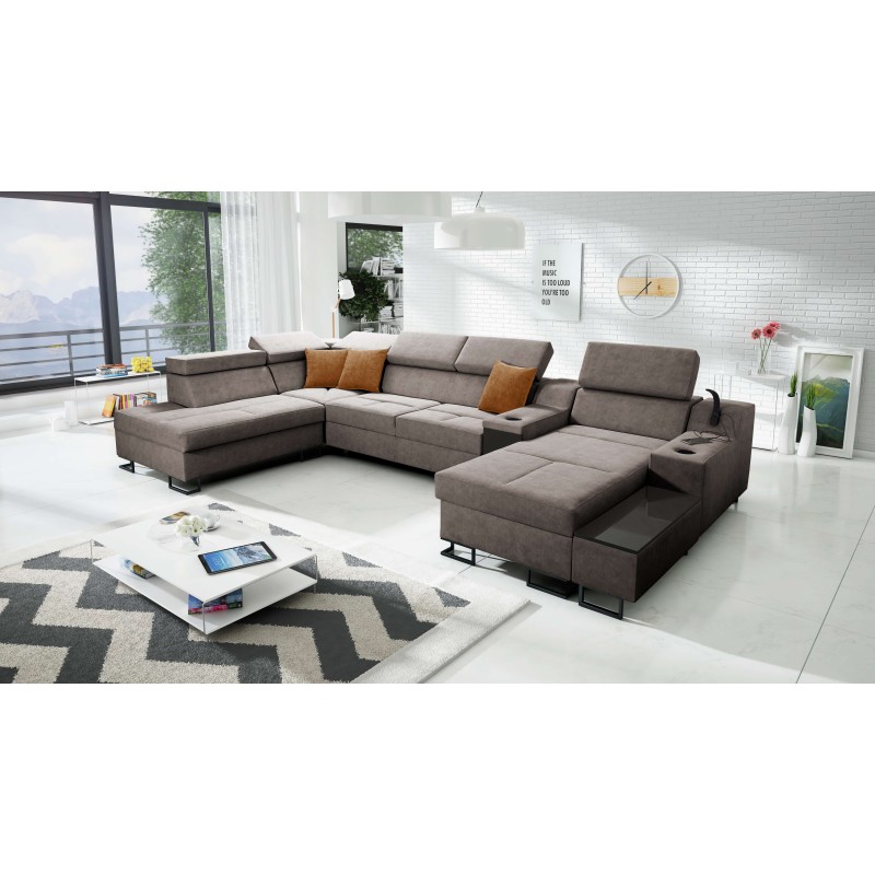 U-shaped corner sofa Avanti V with a sleeping function and a lamp with a USB port, fabric Whisper 5