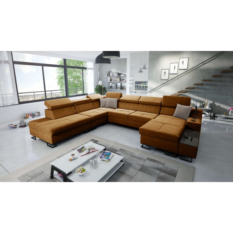 Discover the luxury and comfort offered by the Avanti X U-shaped Corner Sofa with a sleeping function and a lamp with a USB port – finished with elegant, durable Velvet fabric, Whisper 9. This modern yet functional piece of furniture is created for those who value not only style but also practicality. Designed with attention to the smallest details, it creates a unique combination of aesthetics and comfort.