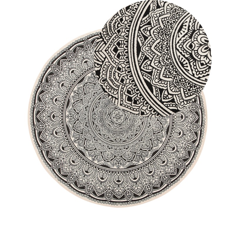 Dywan okrągły bawełniany orientalny nadruk ø 120 cm czarno-kremowy HIZAN