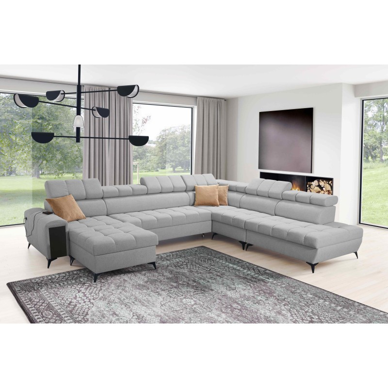 Narożnik w kształcie U Venna X z funkcja spania, portem usb i otwieranym barkiem tkanina Avra 16